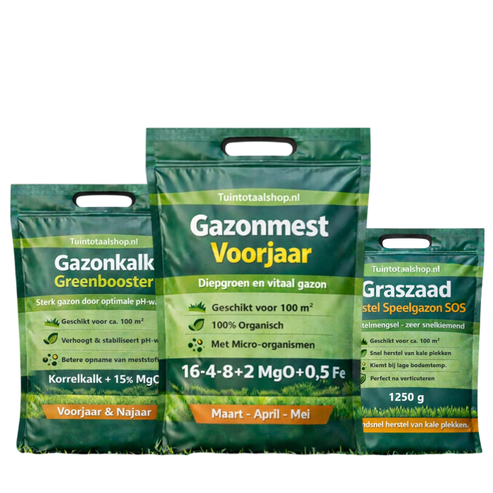 De kit bevat Gazonkalk Greenbooster, Gazonmest voorjaar en snel herstellend Graszaad herstel / doorzaaien van Barenbrug. Geschikt voor speel-, sport- en siergazons.